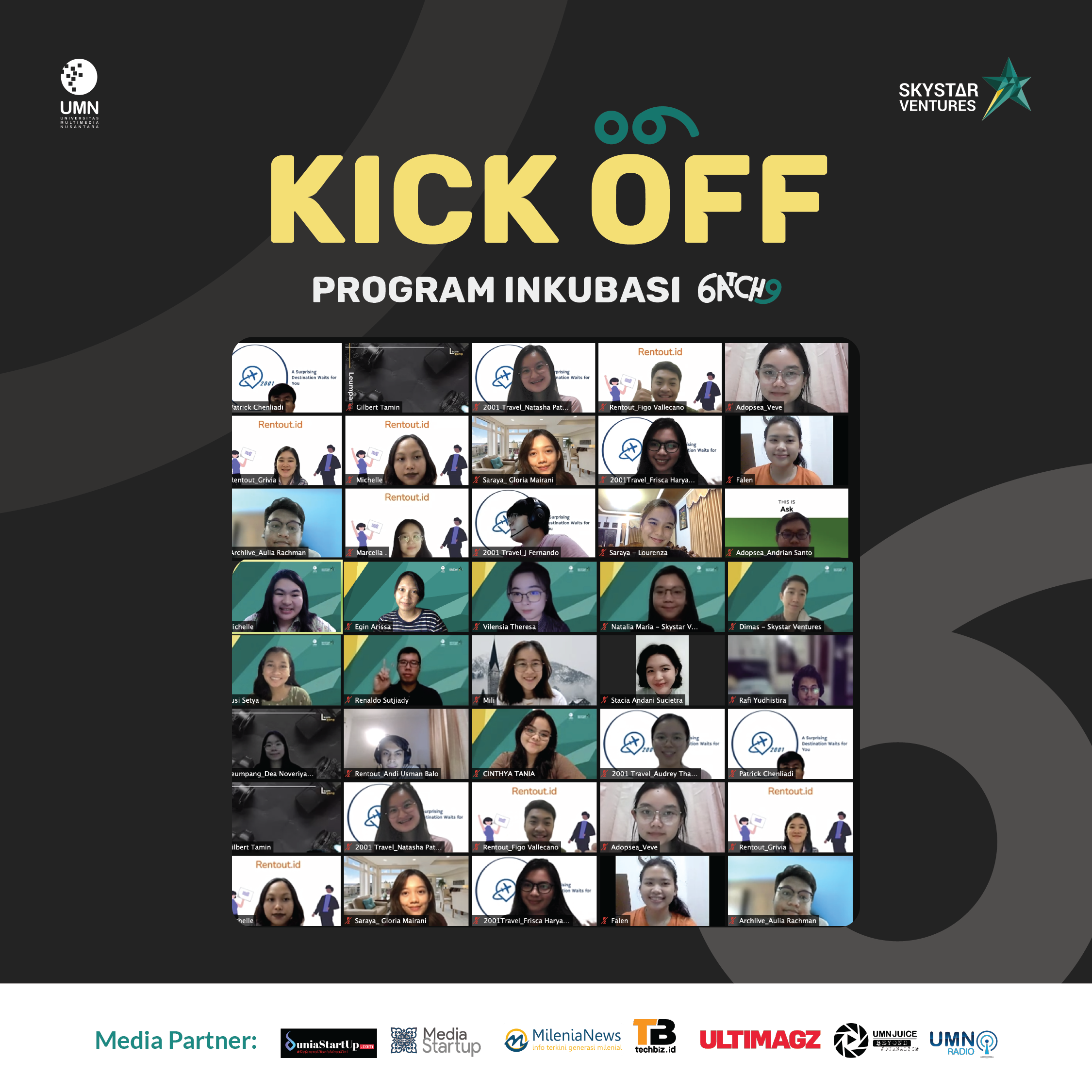 Skystar Ventures UMN melaksanakan acara Kick-Off untuk memulai secara resmi program inkubasi Batch 9. Acara ini akan dilaksanakan pada Jumat (18/2/2022) secara virtual dan dihadiri oleh tujuh startup terpilih yang telah mengikuti rangkaian kegiatan Bootcamp. Kick-Off akan diawali dengan sambutan dari Andrey Andoko selaku Wakil Rektor Bidang Administrasi Umum dan Keuangan UMN dan Yovita Surianto selaku Business Incubator Manager Skystar Ventures.