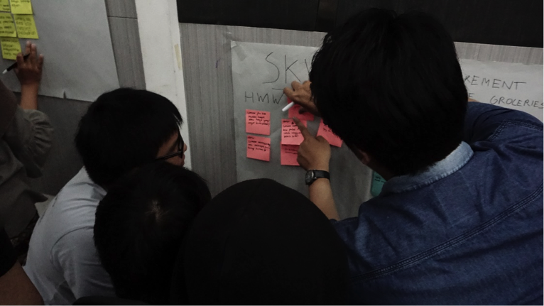 Kemudian, pada hari ke 2 dan ke 3 dilanjutkan dengan memberikan solusi terhadap semua analisa “how might we” yang sudah ditempelkan setiap problemnya. Sesi ini merupakan sesi yang paling menarik, karena tahap ini mengajarkan bagaimana kita bisa mencari solusi sekreatif mungkin. Ketika semua anggota Tim sudah menyumbang solusi, semua wajib mengklasifikasikan solusi tersebut masuk dalam berbagai kategori yang berbeda, bisa masuk ke kategori operasional , keuangan , marketing dan lain lain. Setelah sudah mengelompokkan, anggota tim wajib voting terhadap solusi yang paling possible untuk dilakukan.