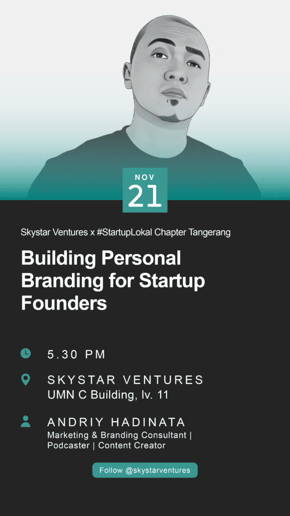 Hi Startup Community,  Skystar Ventures x StartupLokal are excited to present an engaging and informative workshop, “Building Personal Branding for…