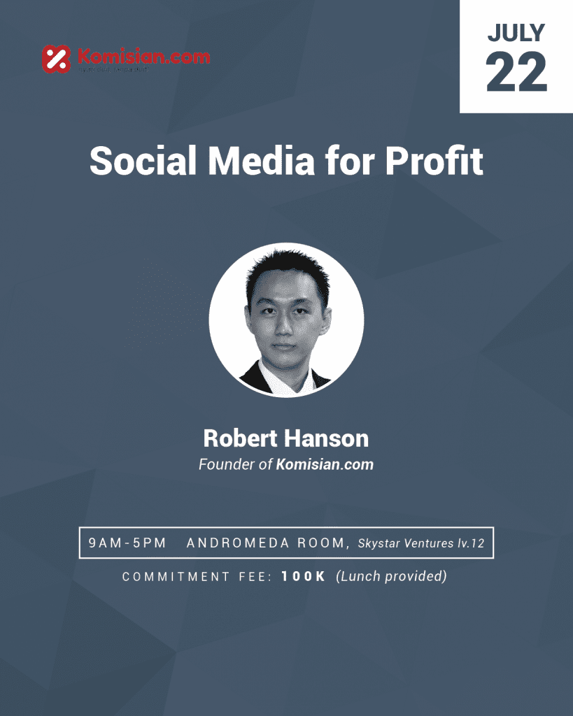 Practical Workshop : Social Media for Profit Setiap hari, ada ribuan orang membutuhkan produk Anda. Apakah Anda sudah bisa tampil di…