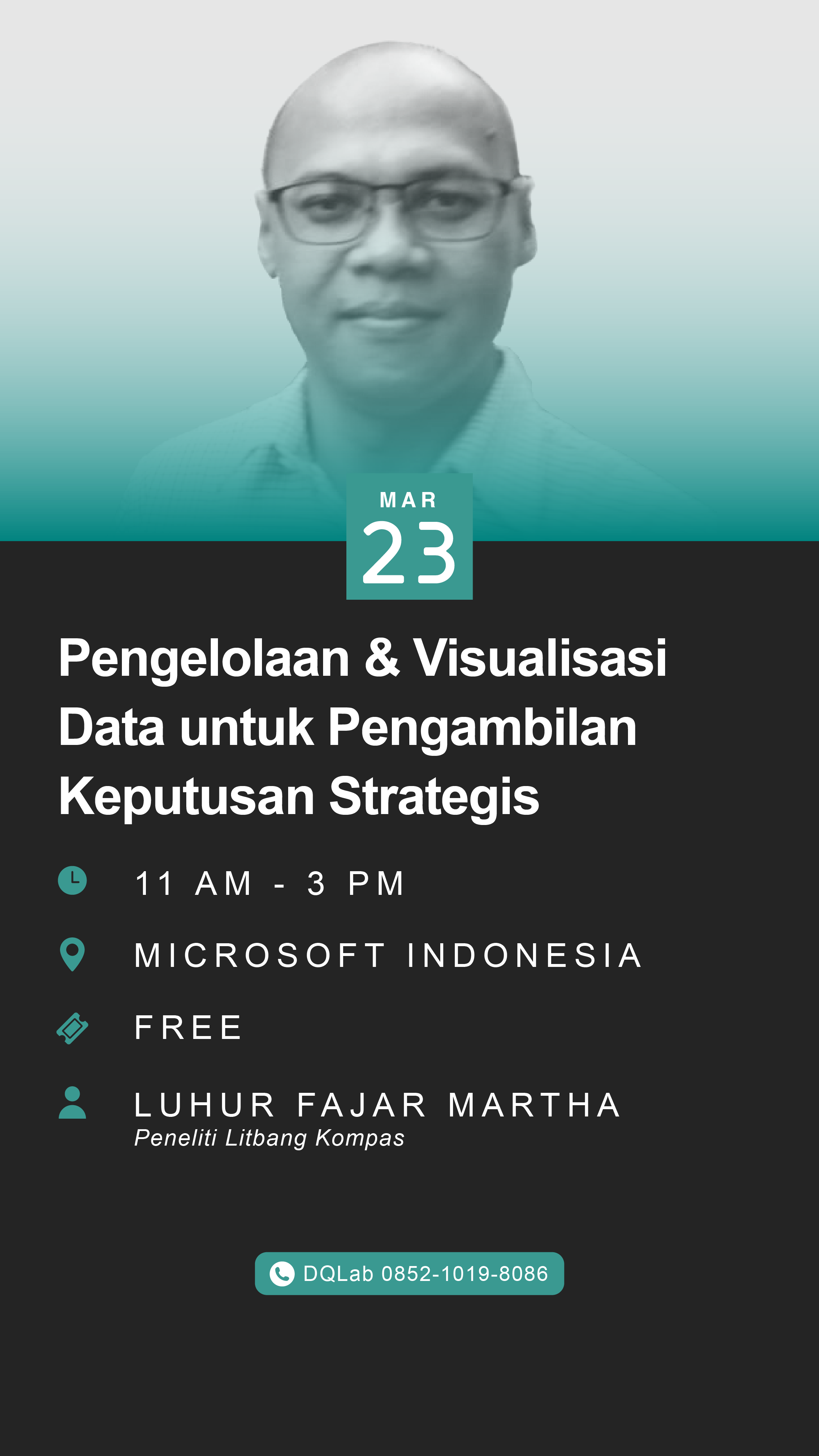 Cari tahu selengkapnya peran pengelolaan dan visualisasi data untuk menghasilkan sebuah insight yang bernilai bagi pengambilan keputusan strategis organisasi dengan belajar data science bersama Luhur Fajar Martha – Peneliti Litbang Kompas. Sesi akan dilanjutkan dengan sesi praktek visualisasi data bersama Feris Thia – Data Science & Big Data System Architect PHI Integration.