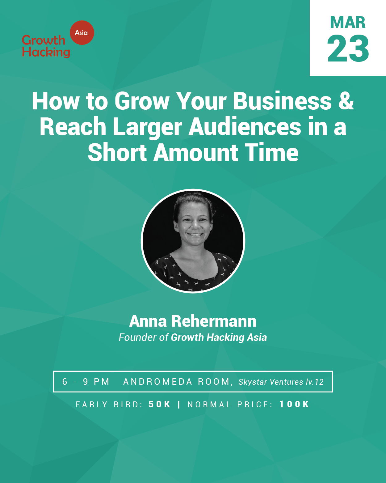Anna is passionate serial entrepreneur with a strong background in Digital Marketing, Analytics, and Growth Hacking. She worked with Rocket Internet and Team Europe Ventures, two leading global venture builders, to set up and maintain the complete range of digital marketing and business intelligence activities for some of their ventures. Anna then founded her own company, Growth Hacking Asia, a Growth Hacking Academy and Consultancy with the goal to flip the success rate of Asian startups from 1/10 to 9/10.
