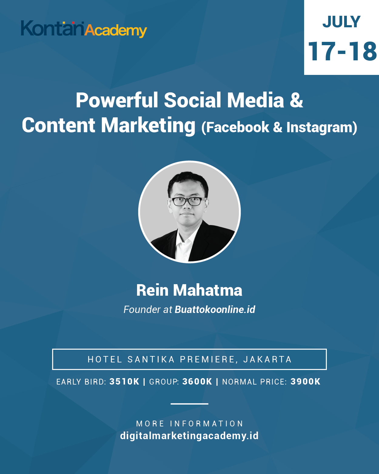 Pelajari mudahnya meningkatkan omzet penjualan melalui implementasi social media & content marketing workshop menggunakan pendekatan proaktif dan praktis!