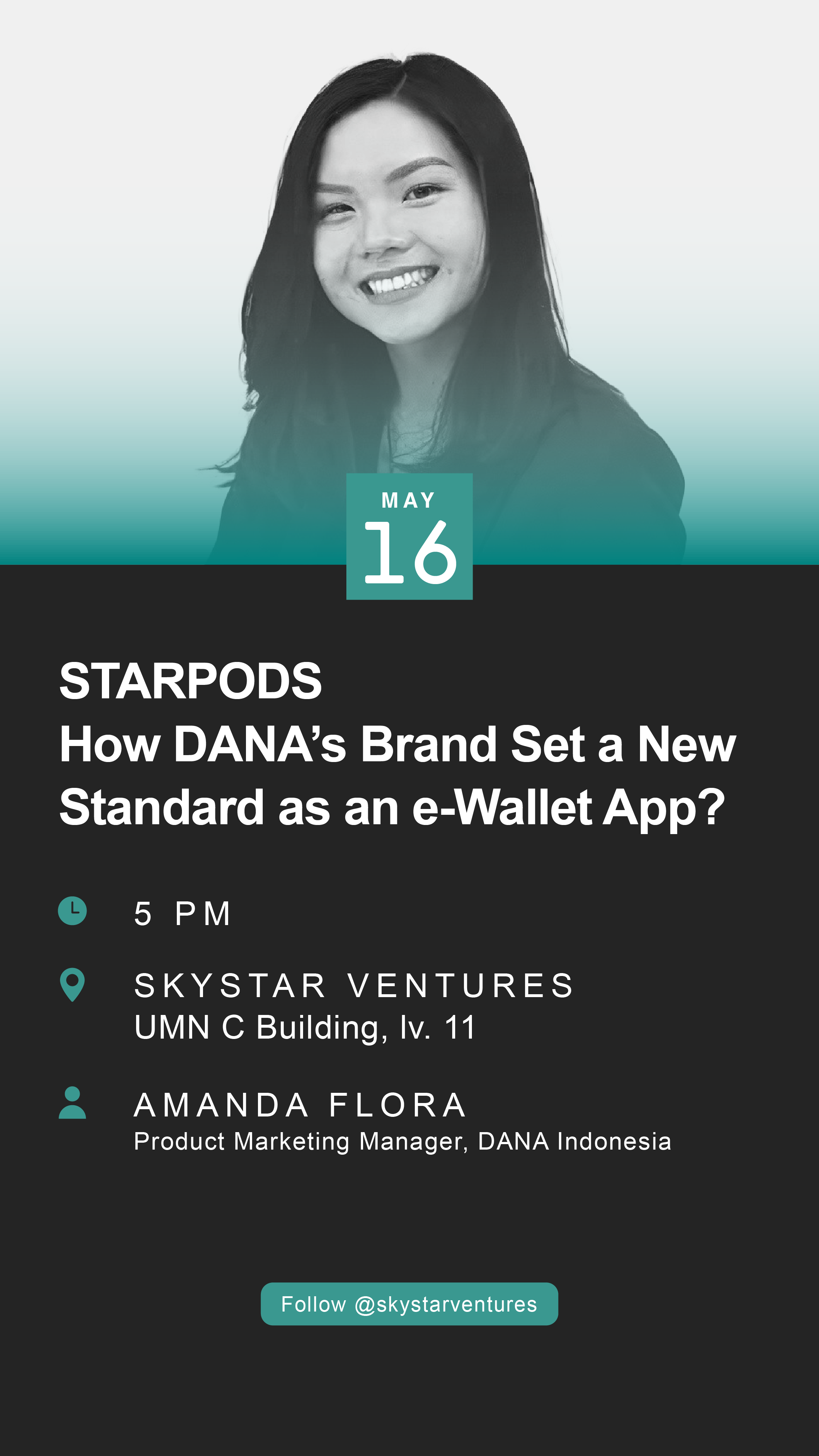 Register yourself for the onsite STARPODS session “How DANA’s Brand Set a New Standard as an e-Wallet App?” with Amanda Flora – Product Marketing Manager of DANA Indonesia!