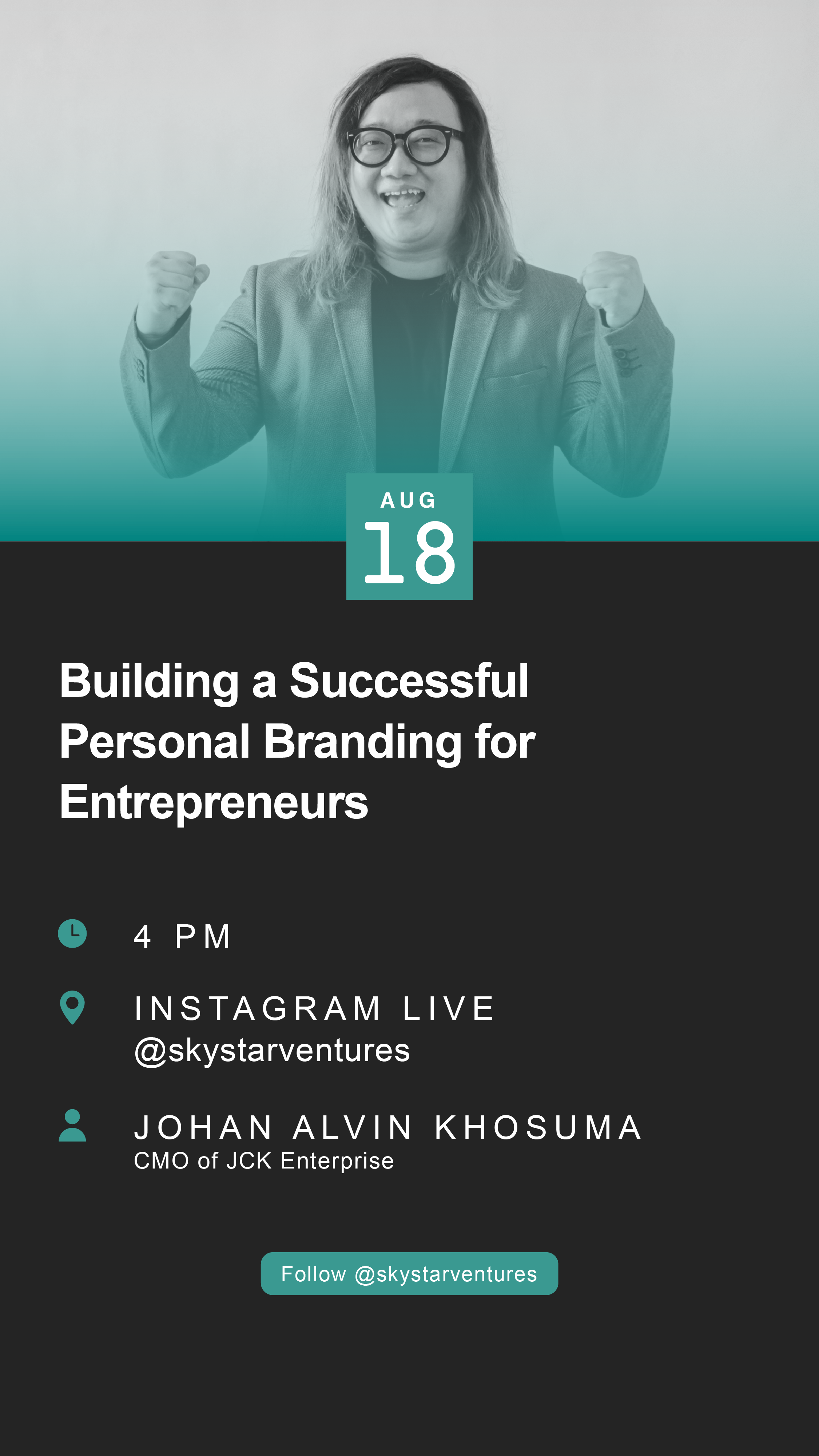 Yuk, belajar dan pahami lebih dalam mengenai bagaimana membangun personal branding dapat menciptakan peluang baru dan manfaat lebih besar untuk untuk bisnis Anda! Ikuti STARTALK “Building a Successful Personal Brand for Entrepreneurs” bersama Johan Alvin Khosuma – CMO of JCK Entreprise.