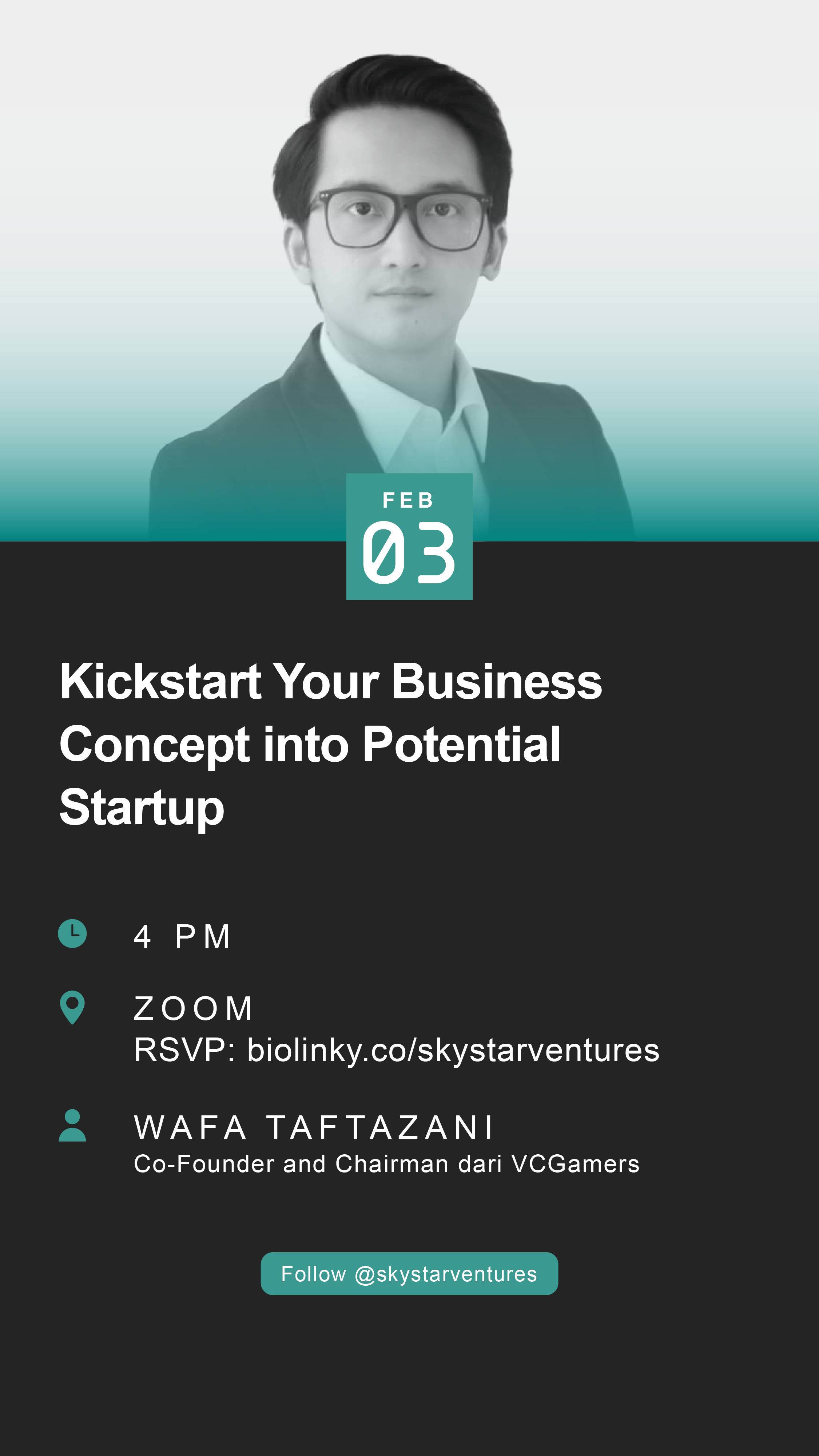 Come join and learn together in the STARTALK program “Kickstart Your Business Concept into Potential Startup” with Wafa Taftazani – Co-Founder and Chairman of VCGamers!