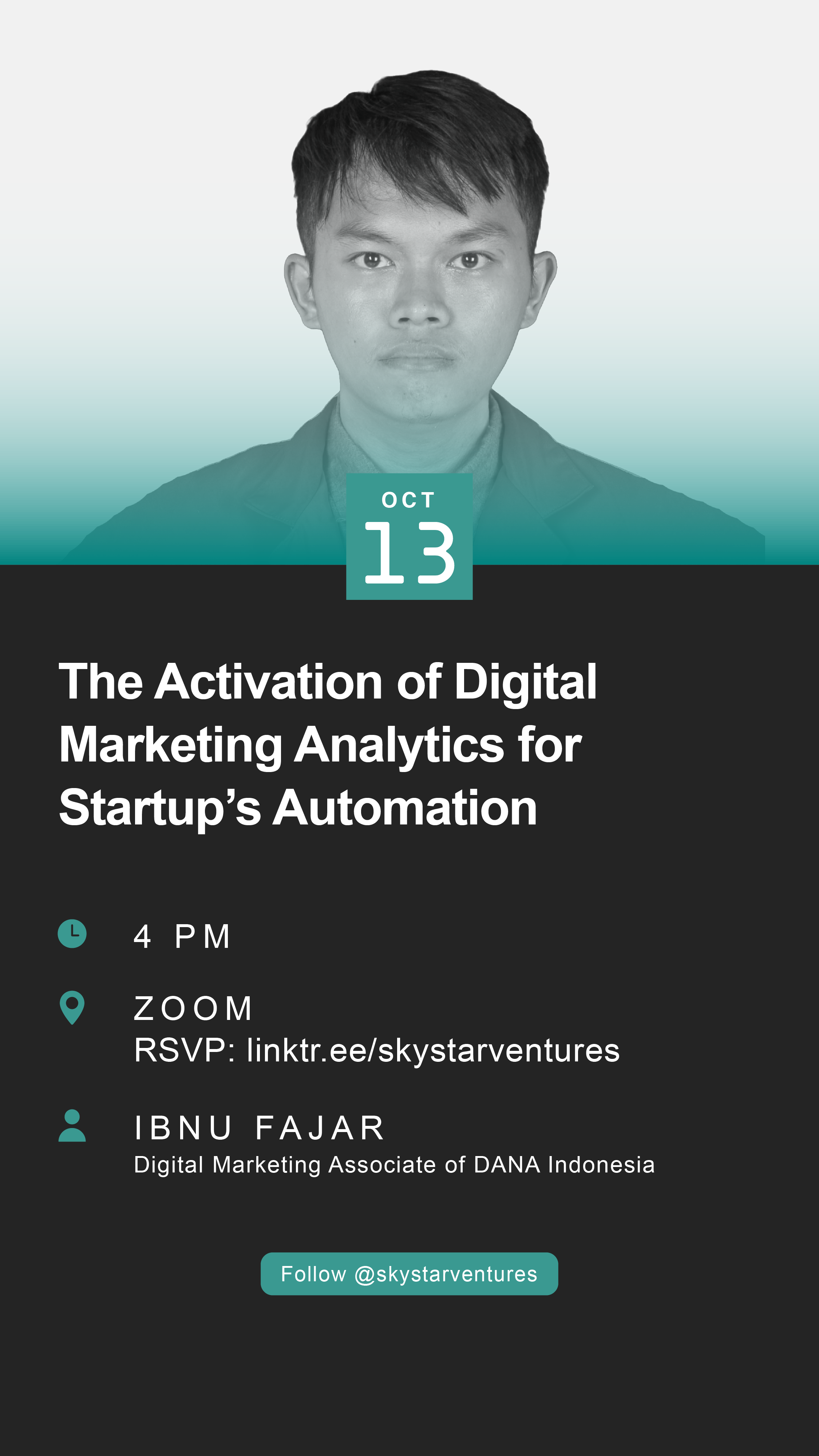 Come join and learn together in the STARTALK program “The Activation of Digital Marketing Analytics for Startup’s Automation” with Ibnu Fajar – Digital Marketing Associate at DANA Indonesia!