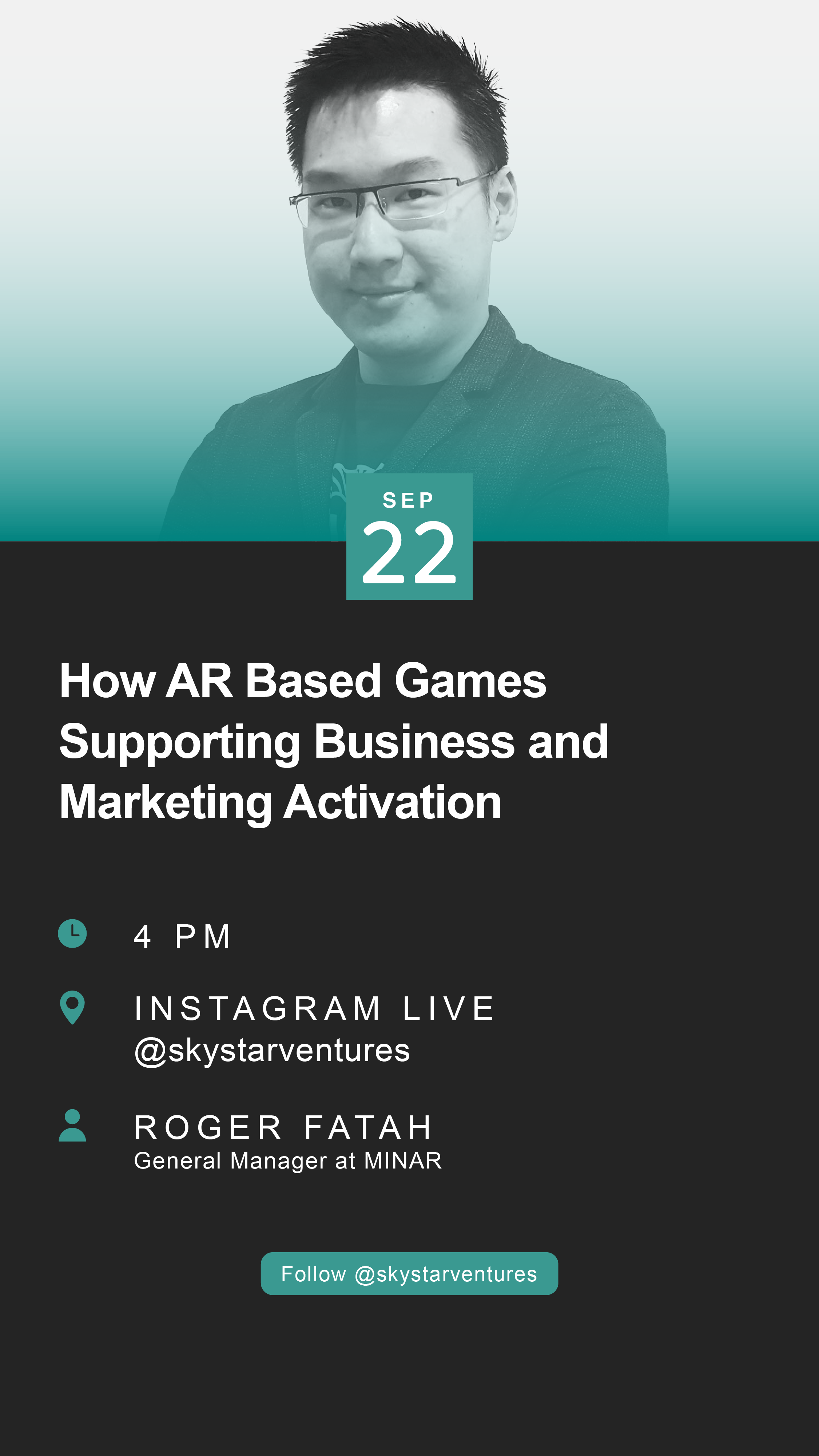 Ayo pahami secara mendetil mengenai kesempatan yang disediakan oleh platform game berbasis AR di Indonesia untuk aktivitas bisnis Anda! Dengan cara mengikuti STARTALK “The Future of Augmented Reality: How AR Based Games Supporting Business and Marketing Activation?” bersama Roger Fatah – General Manager of MINAR!