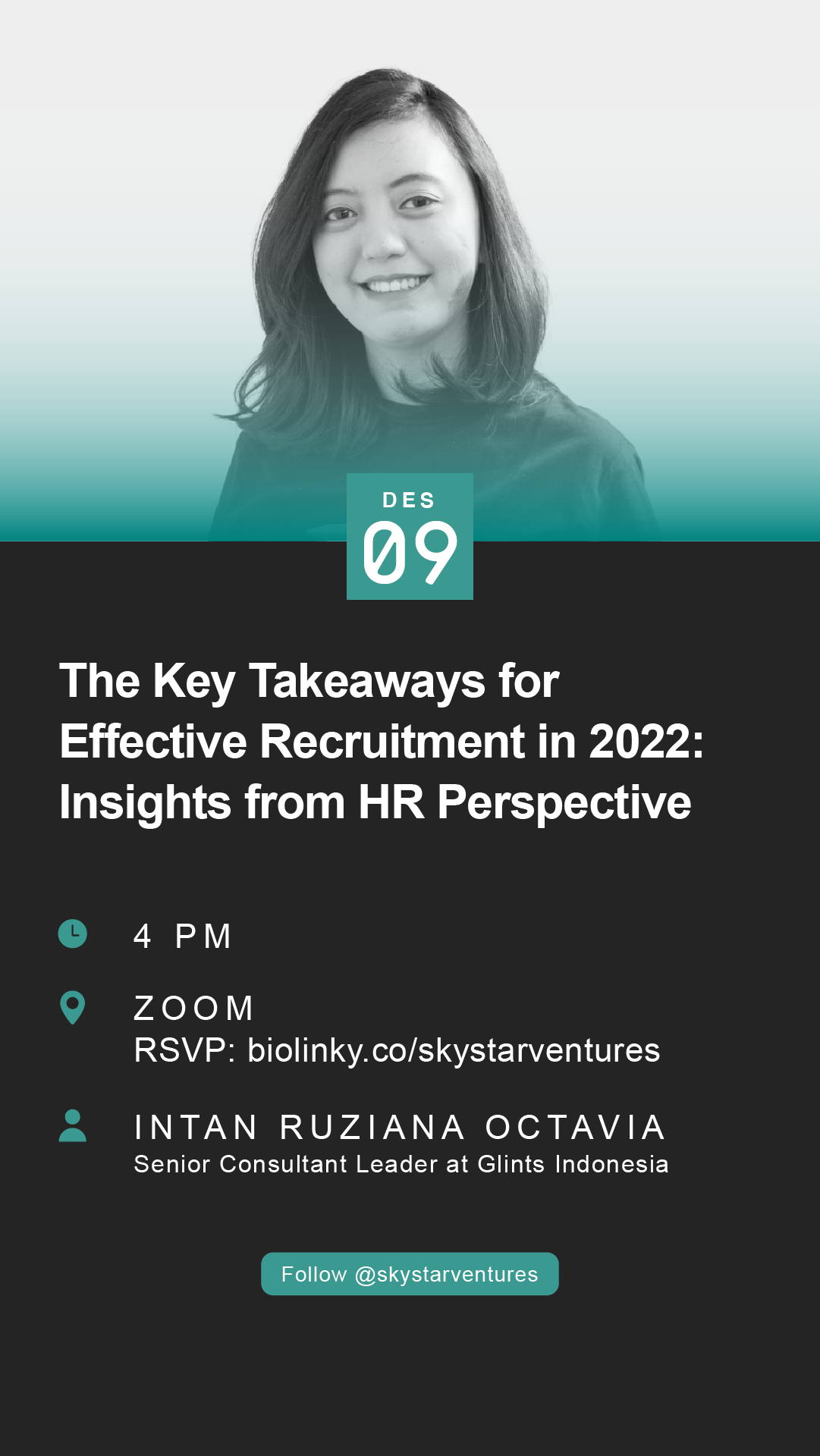 Come and join the STARTALK program “The Key Takeaways for Effective Recruitment in 2022: Insights from HR Perspective” with Intan Ruziana Octavia – Senior Consultant Leader at Glints Indonesia!