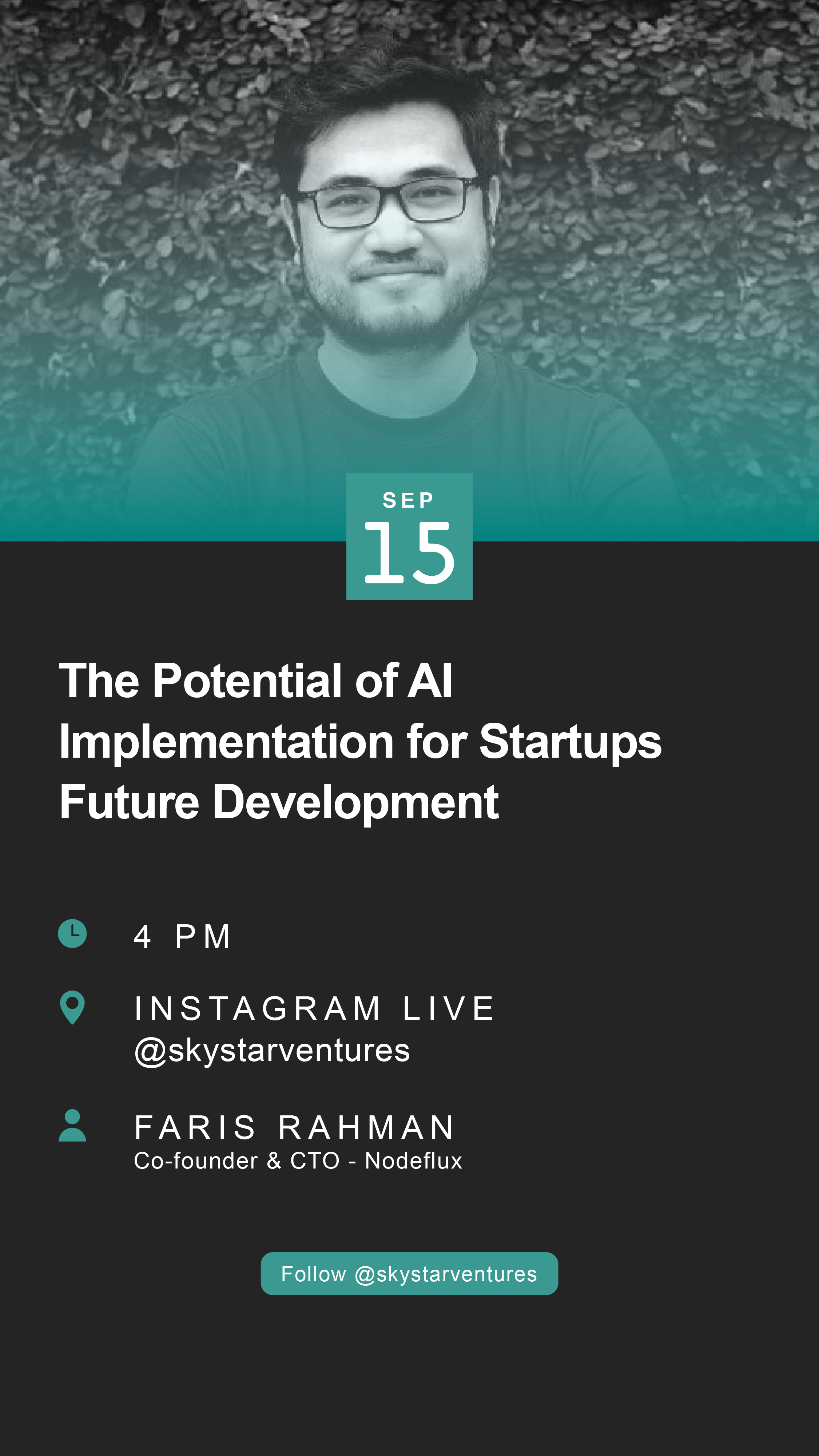 Anda boleh menyebarkan informasi kegiatan ini untuk semua sahabat dan kerabat Anda! Pastikan Anda tidak lupa untuk mengikuti Instagram kami @skystarventures sebelum bergabung ya!