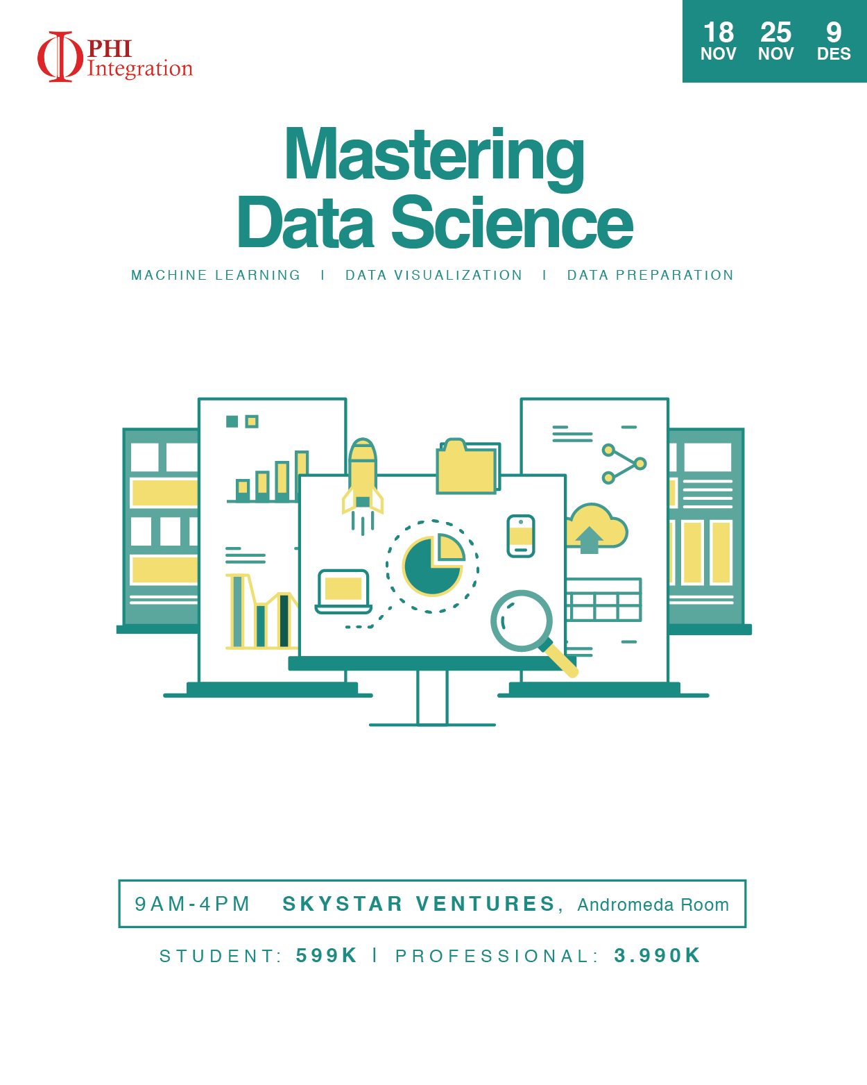 ‘Mastering Data Science’ Workshop Series akan membahas 3 core utama pada: Machine Learning, Data Visualization, Data Preparation.
